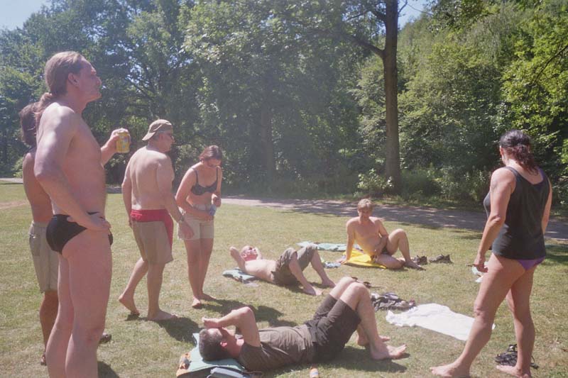 Der Anblick wurde immer freizügiger, die Haut immer röter, die Badetücher immer nässer. Aber dafür kam das Ziel auch langsam näher. Die Schwimmwesten hatten endlich eine Aufgabe. In der Wupper hatten sie sich schon ziemlich gelangweilt. |