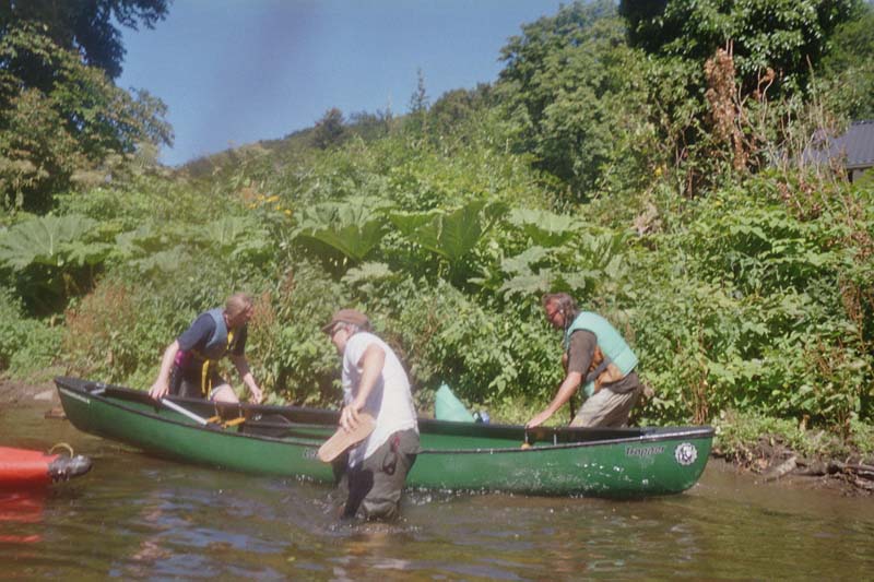 So paddelten wir durch die freie Natur. Besichtigten die Bäume und Sträucher am Wupperrand (einige aus der Nähe), hörten den Vögeln des Waldes zu und begegneten allseits bekanntem Wassergetier. Anderswo bauen Biber kleine Wälle, in Solingen stehen Kühe im Wasser. So hat halt jeder Landstrich seine kleinen Fauna-Attraktionen. Auch die Kühe wollte man einer besonders genau betrachten, doch leider gibt es davon kein Beweisfoto. Unternehmen Kanukühemelken ist auf jeden Fall gescheitert. | |||
